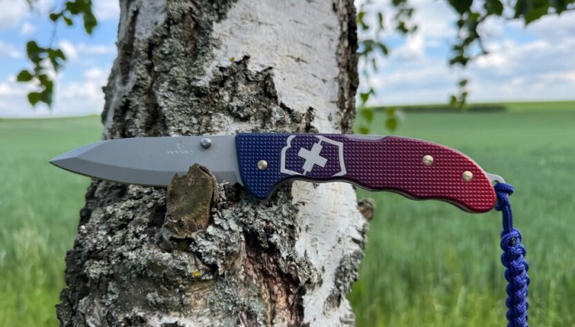 Nůž Evoke od švýcarské firmy Victorinox je ukázkovým kapesním EDC nožem a pokračováním vývoje oblíbeného „švýcara“ Hunter Pro. Evoke existuje v mnoha barevných provedeních jak čepele, tak střenky nože. Od typických ikonických barev jako je červená nebo stříbrná po maskovací. Pro náš test jsme si vybrali zajímavou dvoubarevnou verzi s označením Blue and Red Alox. Ale že jsou krásné vlastně všechny verze potvrzuje i držení ceny reddot winner 2023.